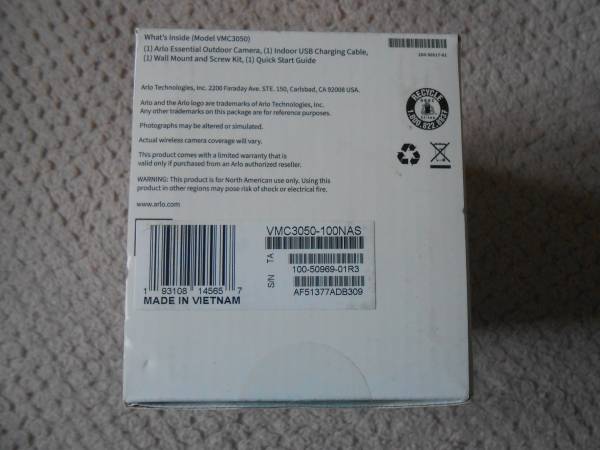 Arlo 2K - Essential Outdoor Camera. Model # VMC3050-100.
