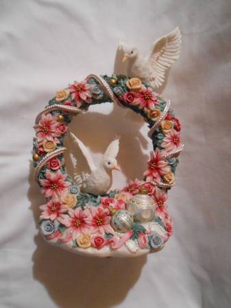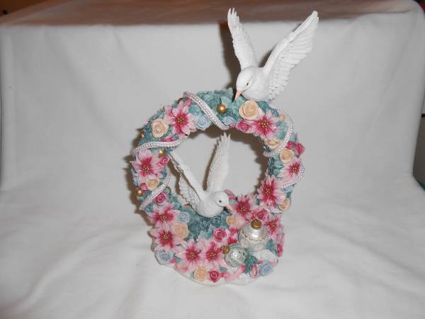 The Music Box Company Christmas Wreath and White Doves. Plays "the Wassail Song". Excellent condition. 7" W x 10.5" H