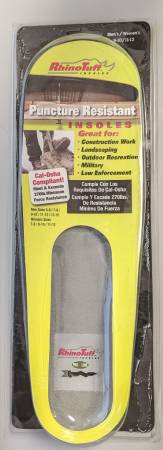 Flexible stainless steel plate protects from accidental puncture wounds. Molded design with heel cup and arch support offers all day support and comfort. Fabric cover wicks away moisture. Used with work shoes and boots.