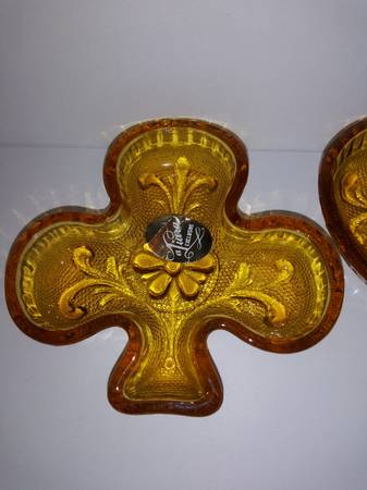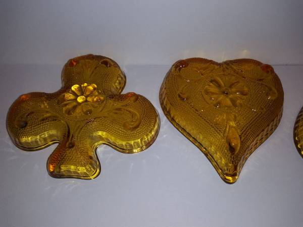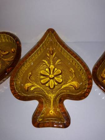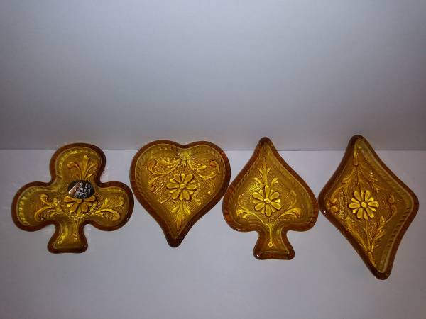 VINTAGE - Tiara Amber Glass Set of 4 (Heart,Diamon,Spade,Club) -...