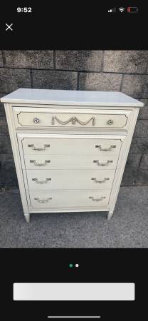 Bedland 4 drawer highboy chest….very good condition and features laminate top, dovetailed drawers, metal on wood drawer slides and all original hardware. Measurements are 34” wide, 17 3/4” deep, and...