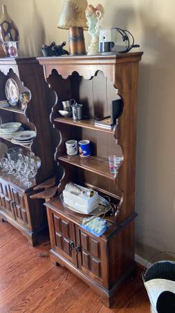 Two cabinets both are 61” high 24” wide and 13” deep. $200.for both. Cabinets only not whats on them. The stuff that’s on them can be bought separately if interested.. Location is Macomb,MI.48044....