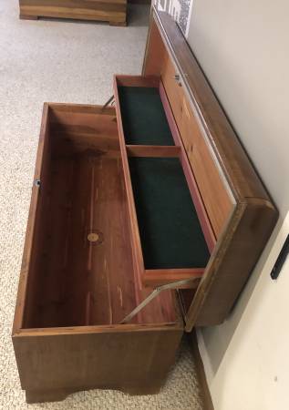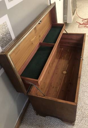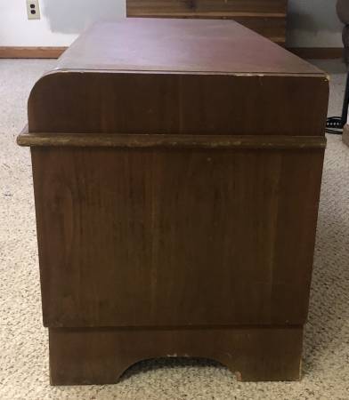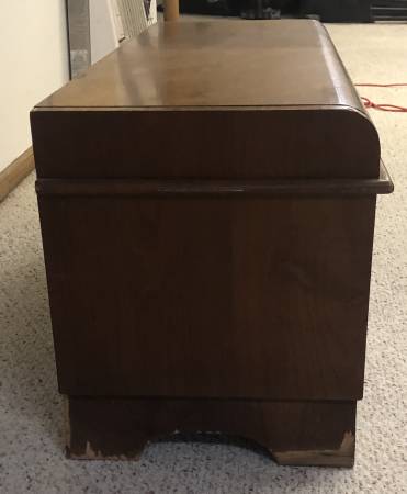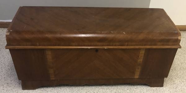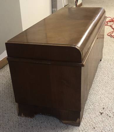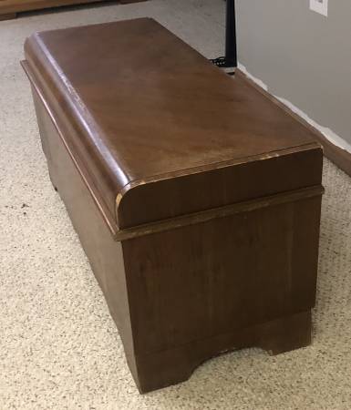 This beautiful Art Deco waterfall-style cedar chest is a classic piece of vintage furniture.