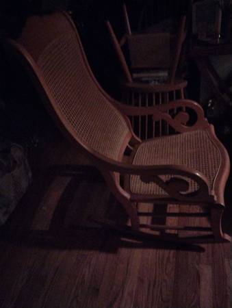 Chairs (2) 12.00 each Bench 20.00 Rocker 20.00 Chairs (3, white) 12.00 Wooden cabinets (2 for 25.00) Chair with ottoman 200.00 Cash only