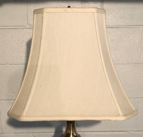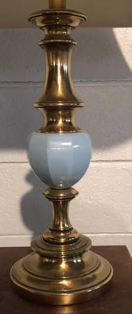 This is a vintage and elegant looking Stiffel gold metal and blue glass table lamp. It measures 31 inches tall. Please see the photographs for complete details.