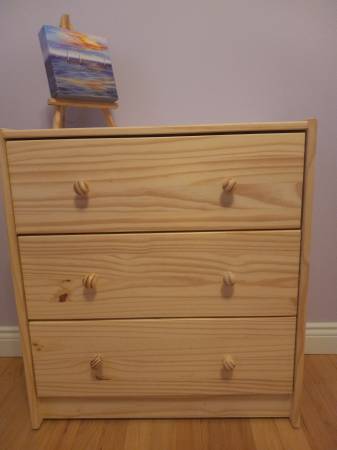 $45 IKEA RAST 3-drawer chest made of solid wood: width 24 3/8 x heights 26 ¾ x depth 13 ¾.
