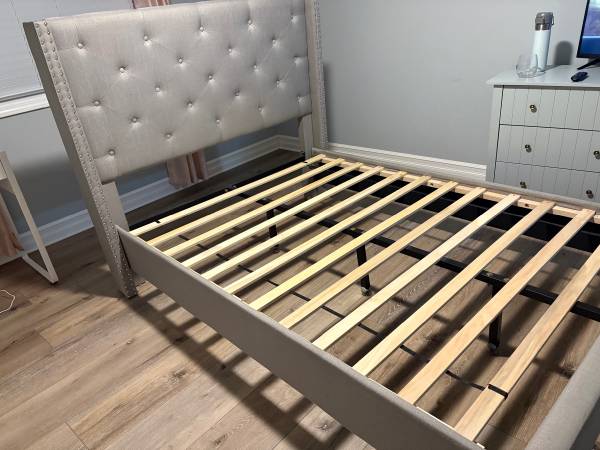Grey full sized platform bed frame. Good condition. No broken pieces