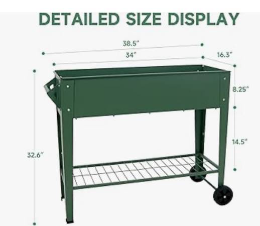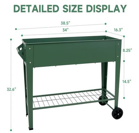 RAISED GARDEN BED SPACE:The raised garden bed with heavy-duty wheels provides a spacious growing space for plants, with a height of 31.6 inches, making it easier to plant and helping to prevent back and knee injuries. The product is 37.4 inches in length, 14.6 inches in width and 31.6 inches in height, and does not take up much space, making it ideal for use on a balcony, patio, deck, backyard, homestead, rooftop or indoors