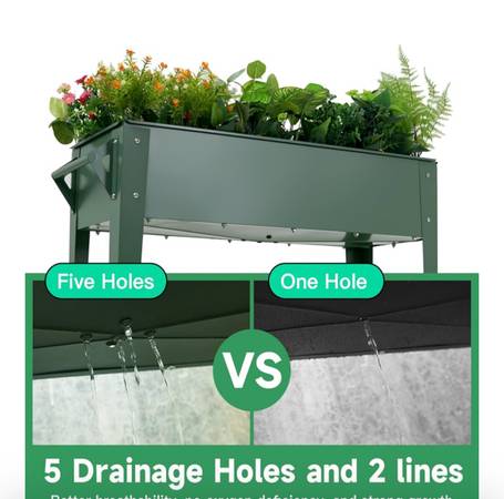 IRRIGATION SYSTEM:The raised garden bed with legs and wheels has 5 drainage holes and two Water-conducting grooves to keep the soil moist without waterlogging the raised flower beds outdoor with legs.Directly plant a variety of crops like peppers, potatoes, carrots, tomatoes, lettuce, beets, scallions, mint, strawberries, herbs, flowers, as well as other fruits and vegetables