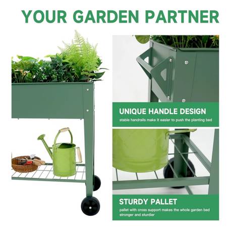 PORTABLE:The raised bed with legs is equipped with two large wheels and an ergonomic handle, allowing for convenient transport and movement of plants. This raised bed on wheels enables you to adjust the amount of sun and shade your plants receive, ensuring optimal growth and development