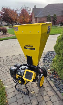 Champion Chipper (LIKE NEW) Bought in 2023 and used for 1 fall season for yard cleanup project. I would say less than 20 hours total then winterized and stored. For 3in branches and brush. Please...