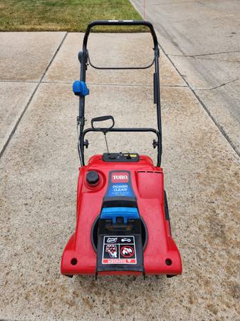 Toro PowerClear snow blower 141cc 2 cycle gas engine Starts on first or second pull Quick Shoot control system Power Propel drive system 21" clearing width Call ( 5 8 6 ) 7 4 7 - 8 7 3 4 for...