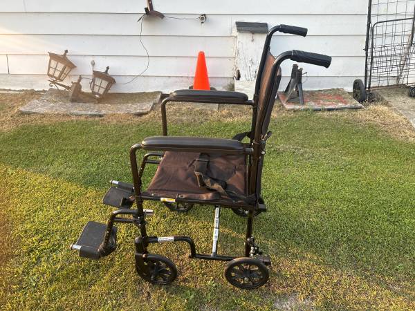 DRIVE WHEEL CHAIR IS USED BUT IN FAIR CONDITION FOLDS UP EASY DOES NOT HAVE LEG REST Seat is 16" Does have leg rest and seat belt FIRST $49 TAKES Call PLEASE NO TEXT PLEASE DON'T CALL AND ASK IF ITS...