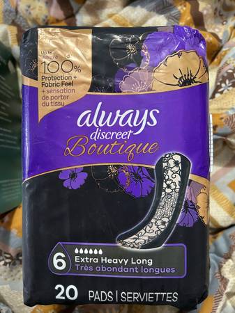 Always discreet Boutique extra heavy long protection #6 count 20 pads unopened.