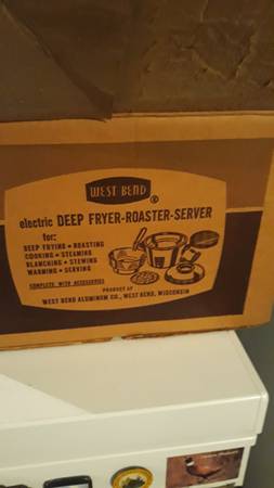 Vintage West Bend cooker. Deep Fry, steam, warm foods. Only used a couple of times. Asking $15.00. Pickup 14 mile and Harper area or 10 mile and Van Dyke area. Texts and emails only please.