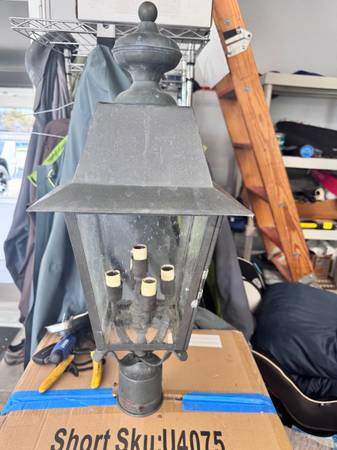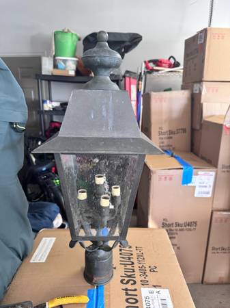 I have seven post light fixtures. From a prominent estate, beautiful shape, one of a kind solid copper fixtures. Beautiful glass five bulb fixtures must see to appreciate.