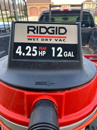 RIDGE 4.5HP 12 Gal WET AND DRY SHOP VAC IN GREAT SHAPE No attachments FIRST $45 TAKES EACH PLEASE CALL PLEASE NO TEXT ZIP CODE 48044