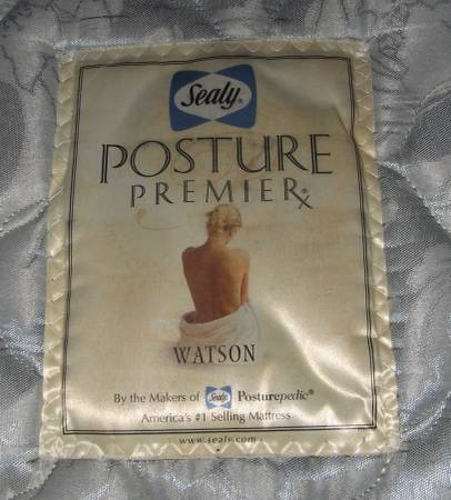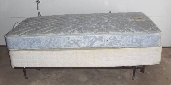 Sealy Posturepedic Premier Twin 38 in. x 75 in. with Matching Serta box spring 38 in. x 75 in. with metal frame, with mattress cover. with pink memory foam 38 in. x 90 in. x 1 1/2 in. kept in a...