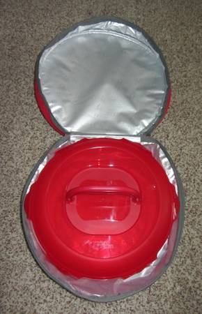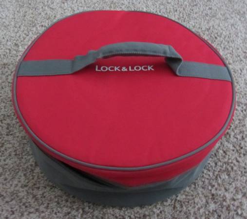 Lock & Lock Round Insulated Travel Container Holder and Storage Container - Red Container Measures 11 inches long Holder Measures 15 inches long