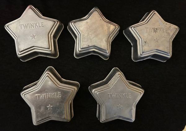 Vintage Star (Twinkle) Aluminum Star Molds Set of 5 Cake Jello Bake 4 Twinkle Star Cake/Jello Molds 1 Star Cake/Jello Mold Vintage star shaped aluminum Jell-o mold/cake molds. The molds are...