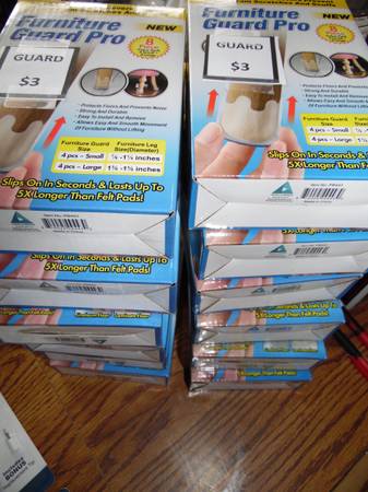 8 Count Furniture Foot Guard Pro--New in Box-Half Price-- Slip these onto the ends of chairs or tables to reduce noise and prevent damage. Move your furniture easily without lifting. Each box...