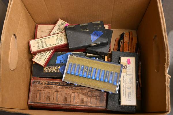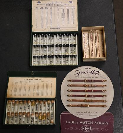 1 lot of Vintage Watch items Crowns, leather bands, see the images 99 % are NEW You get everything in the pictures. Many items in the box have not been opened for the pictures Pick up in Warren,...