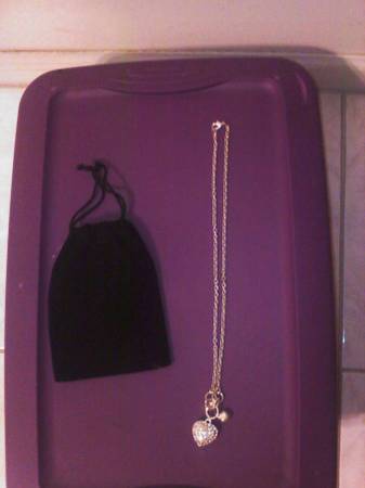 Diamond heart shaped necklace with smaller hanging heart, chain 19", 22" with charm (2nd) (have 2)