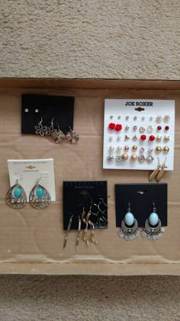 20 pc, 19 post & 1 drop, goldtone, diamond/red stones, pearls, Joe Boxer (top right) - $15.00(7)