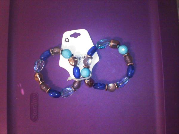 5 stretchable bracelets, stones & gems, 3 shades of blue, pearl & silver, Joe Boxer (7)