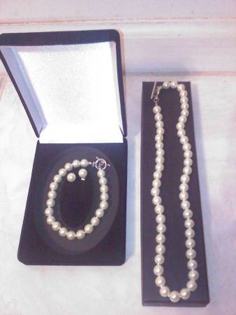 Earrings, bracelet, 18" necklace, in black box, brand-new