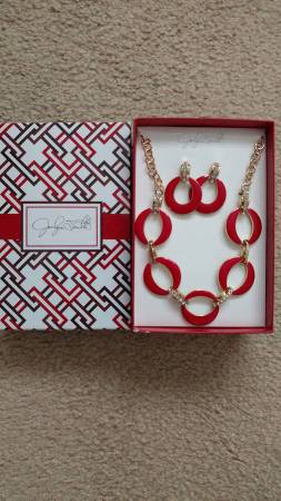 19" adjustable chain, goldtone, post earrings, red, Jaclyn Smith (6)