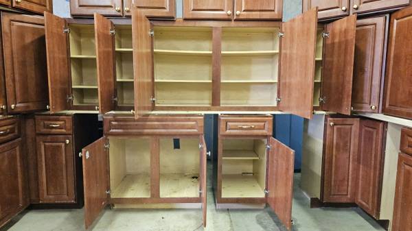 These cabinets are used and do show signs cosmetic wear. Most of the cosmetic wear that I speak of is interior shelf discoloration and the usual minor marks on the exterior. The last four photos are what I feel are the worst of the wear. Overall these cabinets still have plenty of life to them and there is a large amount. You must take all. We do not split sets. Cash only. No holds without viewing and deposit. We do not deliver. Pickup/viewing is in Lenox 48050. Measurements below: