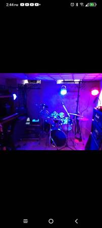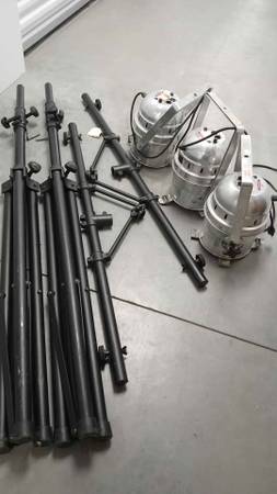 2 light stands and 3 big lights that change color to beat of music and I believe you can set it to be solid colors.