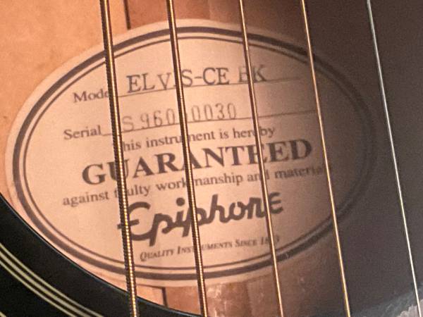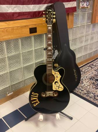 Elvis Epiphone Acoustic Electric Guitar With New Epiphone Hard-Shell Case. Rare cut away version. Epiphone ELVIS-CE BK Most Excellent Used Condition - small nicks… Please see photos.