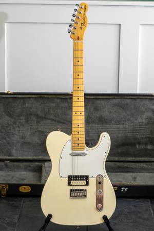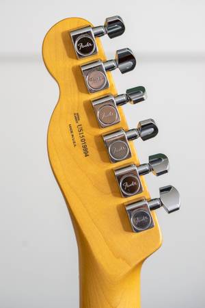 For sale is a 2015 Fender American Professional Telecaster HS in Blonde with a maple fingerboard. This model features the classic Telecaster design with modern upgrades, including a humbucking pickup in the bridge for added versatility and tonal range. The maple fingerboard provides a bright, snappy response, while the alder body delivers balanced tone across all styles of playing.