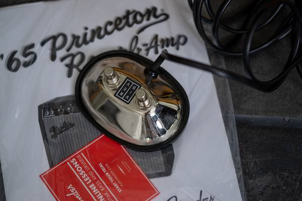 Up for sale is a Fender '65 Princeton Reverb in the limited-edition Lacquered Tweed finish. This Sweetwater-exclusive model features a Celestion G12 speaker, delivering smooth, articulate tone with enhanced low-end response. The amp is in like-new condition, meticulously maintained, and includes the original footswitch and amp cover.