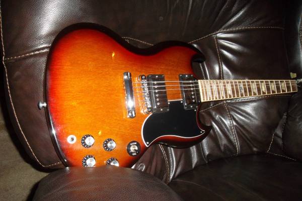 2014 Gibson SG Standard, USA, 120 yr Anniv. issue. Fireburst color, Mini robot tuners, 1957 Classic Humbucker Coil Split pots All Orig. Very Slightly used, like new, With Gibson Brown HSC. $1300.00