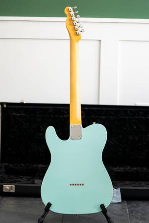 This Tele features Fender’s vintage-style fingerboard radius with tall frets for smooth chording and expressive bends, paired with a satin-finished maple neck that feels broken-in right out of the case. The neck profile is Fender’s comfortable late-’60s carve, and the modern poly finish offers durability without getting sticky or glossy.
