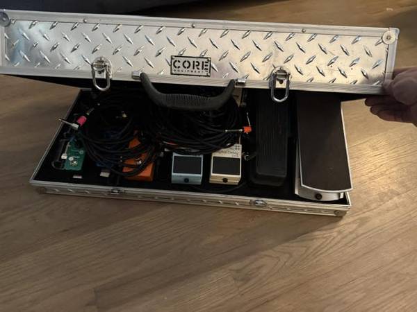 The pedal board that is included in this package is a CORE Equipment diamond plated hard shell box with removable lid. The Pedals included are as follows: