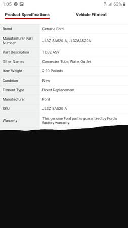 Brand new Ford OEM Water Outlet Connection Tube Assembly. Ford part# JL3Z-8A520-A. Fits 2018-2019 Ford F-150. Please refer to chart for proper vehicle fitment. Asking $25.00. Pickup 14 mile and...