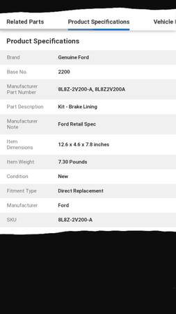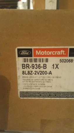 Brand new Ford OEM Motorcraft Escape-Mercury Mariner brake lining kit. Ford part# 8L8Z-2V200-A. Fits 2008-2012 Escape & 2008-2011 Mercury Mariner. Please refer to chart for proper vehicle...
