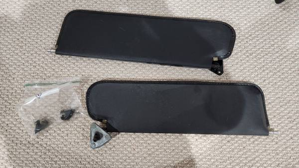 Set of two black 67-72 Chevy visors with visor checks and hardware. Good condition. Went another route with my build, clearing out extra parts.