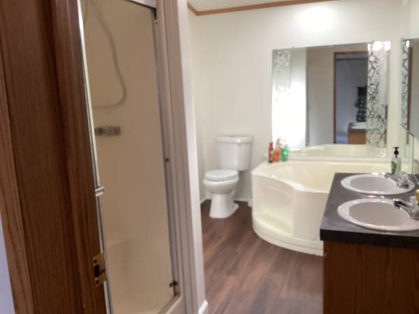 Newly painted and carpeted, the home features include Skylights in both bathrooms, and kitchen, island with electric in kitchen, garden tub, double sinks, and stall shower in the primary bath, in one of the bedrooms a door wall for a great view of the tree line across the berm.