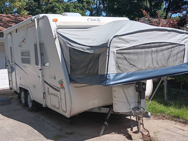 22 foot 2000 hybrid could use the following a hot water heater a toilet water valve and some TLC. Sell includes all needed hoses and cord plus a gray/black water tote.every thing works and no present leaks. Rv cover for winter storage. ALL ITEMS ARE USED. 2800 obo PLEASE CALL OR TEXT ME WITH ANY QUESTIONS