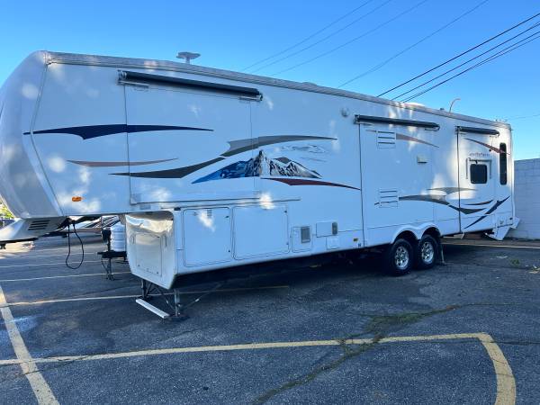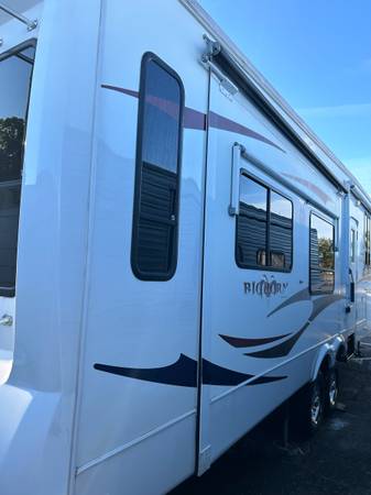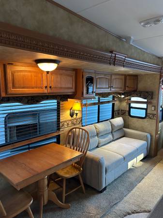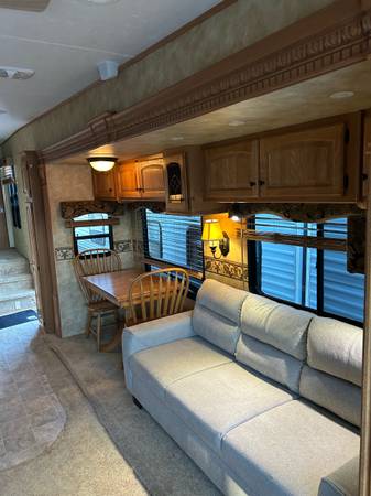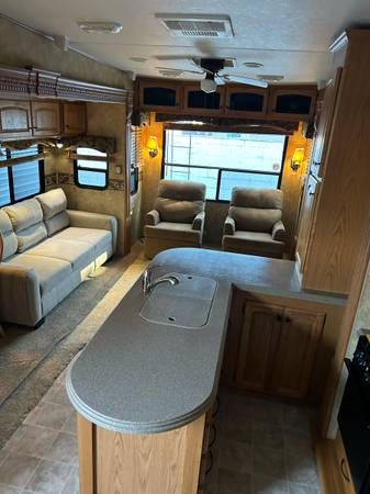 2009 heartland big horn 38ft fifth wheel trailer with 4 slide outs, 12,000lbs, This fifth wheel is perfect for those who enjoy long road trips or extended stays at the campground. The spacious interior of the Bighorn 3670RL features all the comforts of home, including a full kitchen, bathroom, and sleeping accommodations for up to four people. With plenty of storage space throughout, you'll have no trouble bringing along all your essentials for the journey. 2 large slide outs for living room and kitchen, nice large slide out bedroom with walk around king bed, washer and dryer hookup, in very good condition in and out, non smoker no leaks, good tires and breaks can deliver