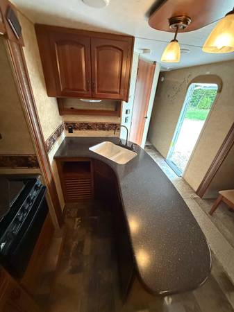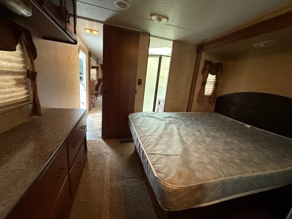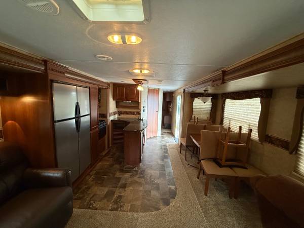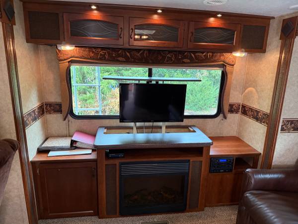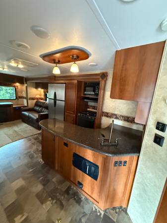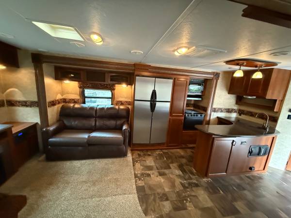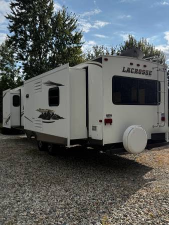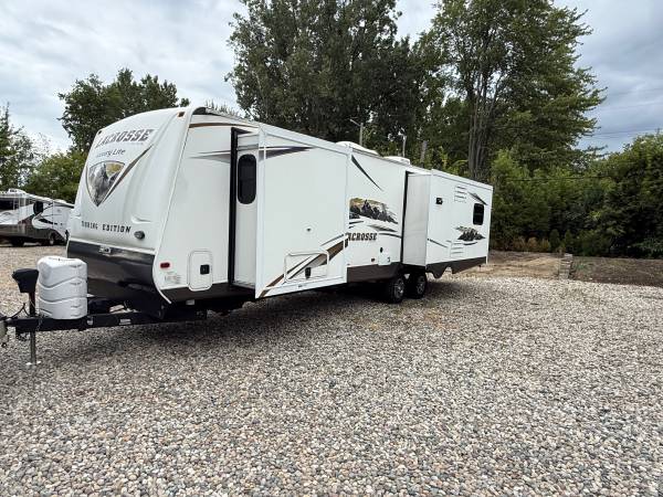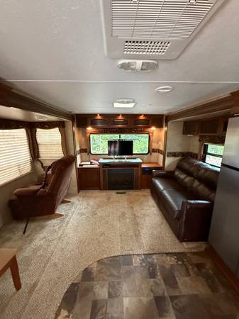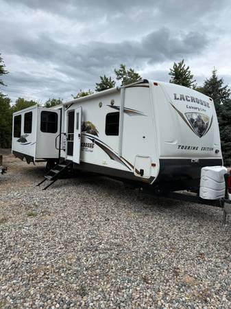 2015 TOURING By prime Time Luxury Lite Touring 32 Foot model number 327 RES half ton toby, behind or full-size SUV toe behind dry weight is 7557 pounds 3 slide outs 2 super slide, outs Feliz self contain like new condition in and out there is no leaks no water damage no soft flooring very clean in and out and ready to go condition roof floor solid everything in and out of camper works like it should Sleeps 4 comfortable front private master bedroom full walk around queen bed with private doors hideaway couch makes into king size bed rear entertainment comes with fireplace stereo system, and TV full kitchen with pantry space 4 door, refrigerator, and icebox also microwave 3 burner range wet oven plenty of counter, space and storage space in and out power everything power awning in great condition, power tongue, jack, and all 4 level and Jack’s power also tires new with spare wheel tire all electrical plumbing, AC N central heat works like it should everything in and out a camper works great never was any smoking or pets in it it is a must see to appreciate gorgeous camper in out I also have a clean title in a hand, serious buyers only if interested please call or text to come look at it at 586-238-9616 is my cell number. Thank you please serious buyers only $15.500