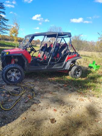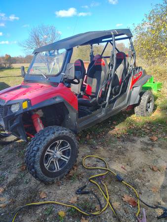 2013, 900 cc, 88 hp fuel injection, Automatic transmission and clutch. 2WD / AWD. it's going to need some work and a battery, not running right now. I did jump start. It has some new parts like tires ,brakes,clutch and belt . All street legal safety items have been added, windshield, and wiper , horn ,turn signals and emergency flashers. And been inspected and certified with an Green Michigan ASSEMBLED TITLE. to purchase license plates No offers over the phone. maybe possible trade. JEEP Wrangler. Thanks Ted.586 two ,one 6 497,one
