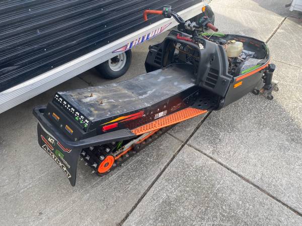 1998 arctic cat thundercat chassis,this was set up for ice and grass,what you see is what you get!,lots of good parts still,nice shaved track with 240 ice picks and chisels,stock skid set up for drag,whal front shocks,cdi box,coils,chain case,bumper trim,skid plate,running board plates,snow flap,wire harness,secondary clutch with d$d components $400 firm! Text is the best way to get in touch thanks