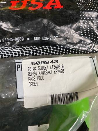 New maier race hood in green,fit’s Kawasaki kfx 400,also fits Suzuki ltz 400.$75 text me is the best way to get in touch thanks