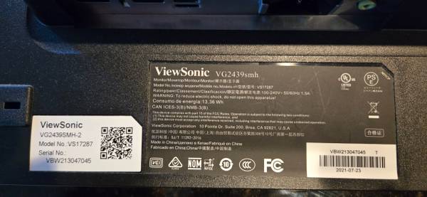 Make: ViewSonic Model: VG2439m-LED Screen Size: 24" Screen Size 24 in Brightness: 250 cd/m² Refresh Rate: 60 Hz Video Inputs VGA D-Sub, DisplayPort, HDMI Standard Color: Black MPN: VG2439SMH Item...
